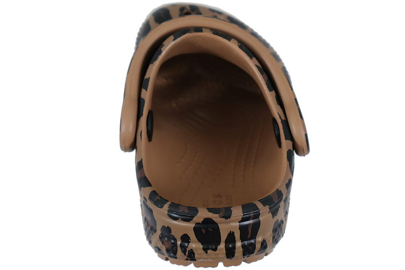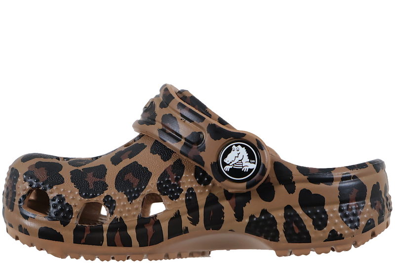 Leopard clogs i gummi fra Crocs til børn. De er super lette og luftige med huller over forfoden. Remmen kan bruges både over vristen og omkring hælen. Skoene er antibakterielle. De er super nemme at komme i og skønne at bruge. Tåler vand.