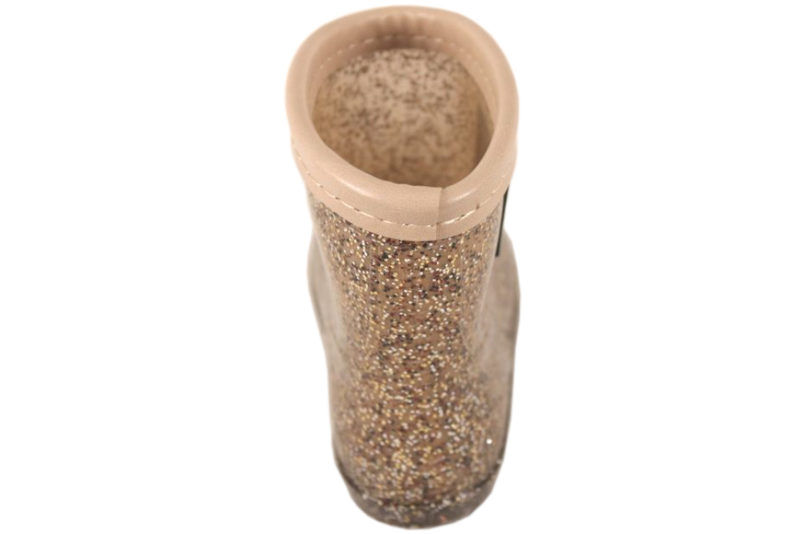 Beigefarvet gummistøvle fra Sofie Schnoor med glimmer. Gummistøvlen er lavet i plastik. I kanten er den beige, hvilket giver en smart detalje. På ydersiden er der et Petit by Sofie Schnoor logo i gummi. Den har en tekstil dæksål, som er udtagelig. Super smart gummistøvle til piger.