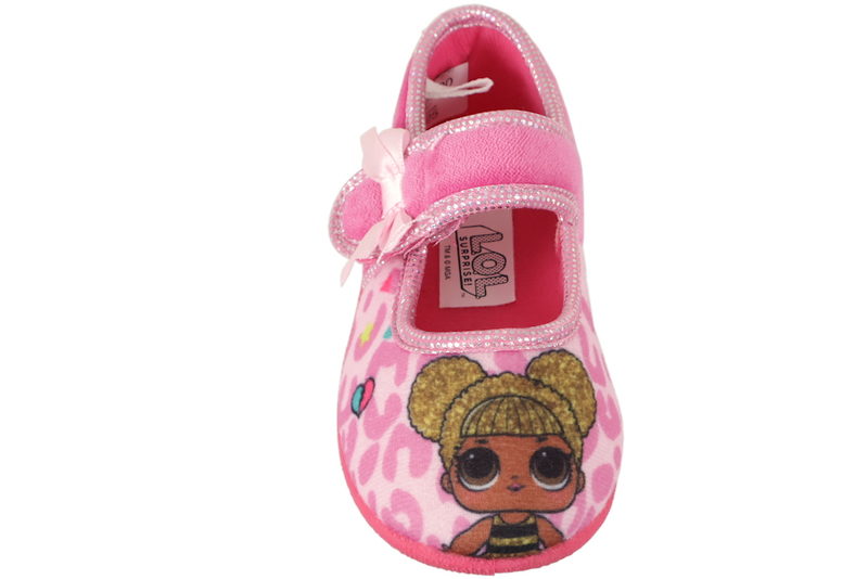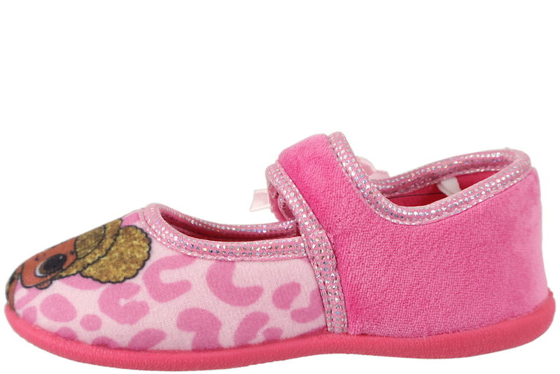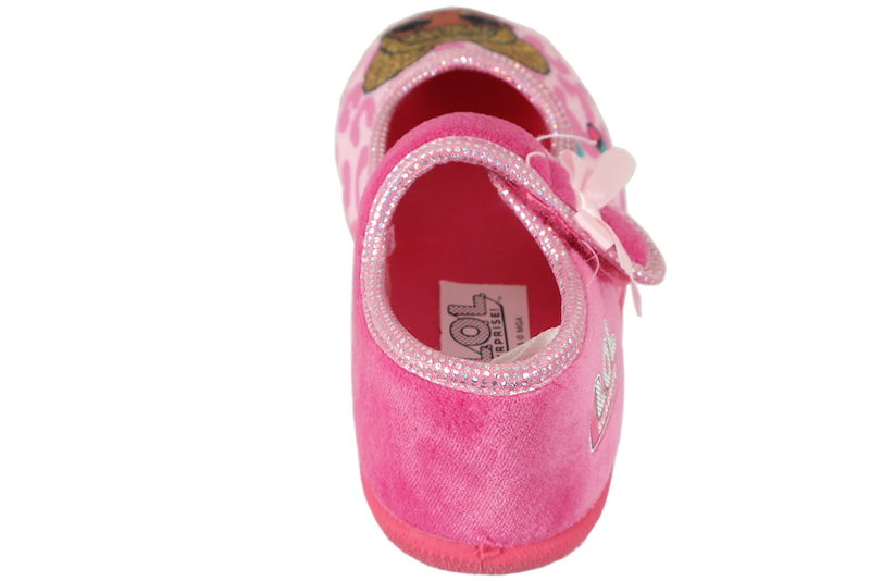 Sød hjemmesko med velcrorem, så den sidder godt på foden. Skoen er med glimmer rundt i kanten. Den har Lol Surprise på forbladet, og navnet på siden. Meget let, fleksibel og blød. God til timer indenfor.