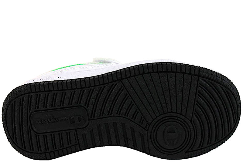 Super smart sko til drenge. Skoen er lavet i hvidt og grønt PU. Foran er der hvide elastik snørebånd samt en velcrorem øverst, hvor der står "Champion" med grøn skrift. På ydersiden er der et grønt "C" for Champion. Indvendigt er den foret med sort tekstil og har en grøn tekstil indlægssål. Mellemsålen er af hvidt gummi. Slidsålen er en sort slidstærk gummisål, så man står fast. Rigtig god sko til de aktive drenge.