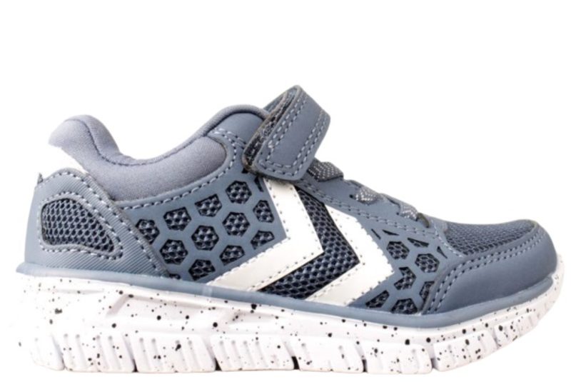HUMMEL CROSSLITE JR. Smart fritidssko til drenge fra Hummel. Skoen er lavet i en flot lyse blå farve, med hvide Hummel striber på siderne. På snuden er der en lille forstærkning. Ned langs vristen er der lyseblå elastik snørebånd, så den slutter godt indtil foden. Ved in steppet er der en justerbar velcro rem, så den er let at komme i og af. Indvendigt er skoen tekstil foret i lyseblå og har en matchende indlægssål i tekstil. Slidsålen er lavet i hvid EVA skum med sorte pletter. Skummet gør dem bløde og fleksible.