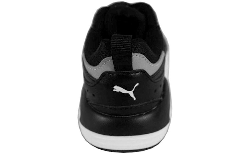 Sort og hvid sneakers fra Puma til drengene. Sålen er en let men kraftig sål, som har det helt rigtige udtryk. Skoen er med elastiksnøre, så de skal ikke snøres. Super smart model fra Puma til drengene.