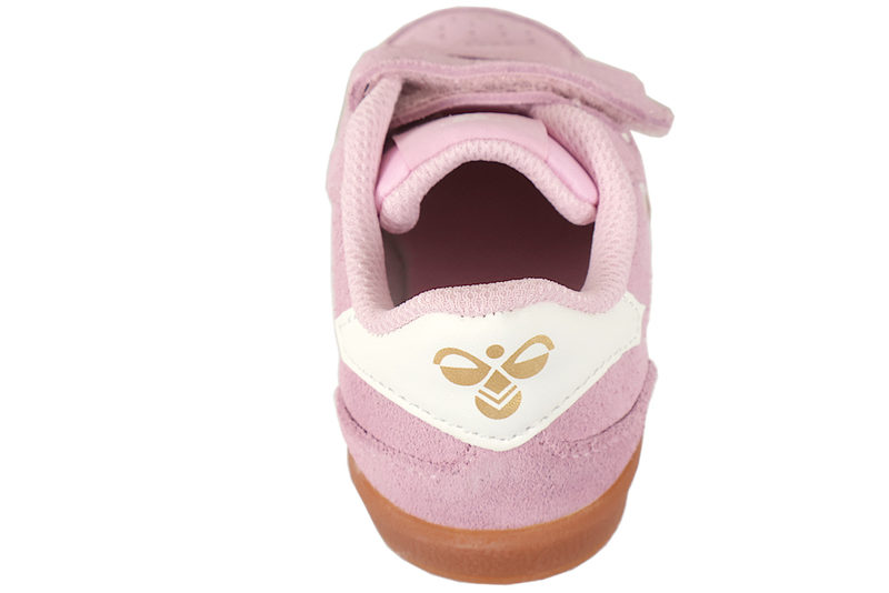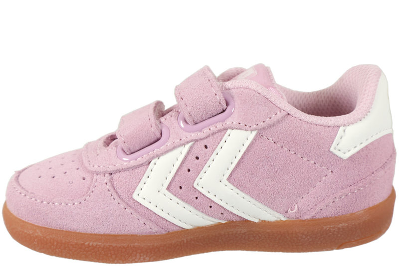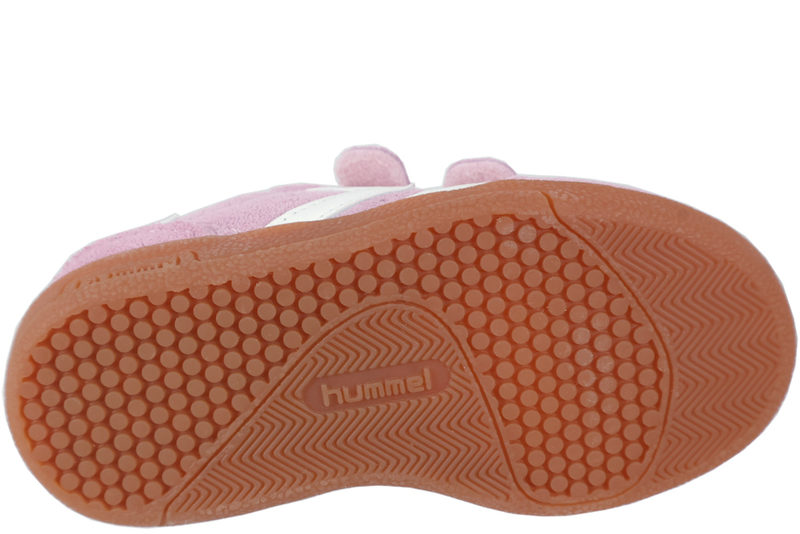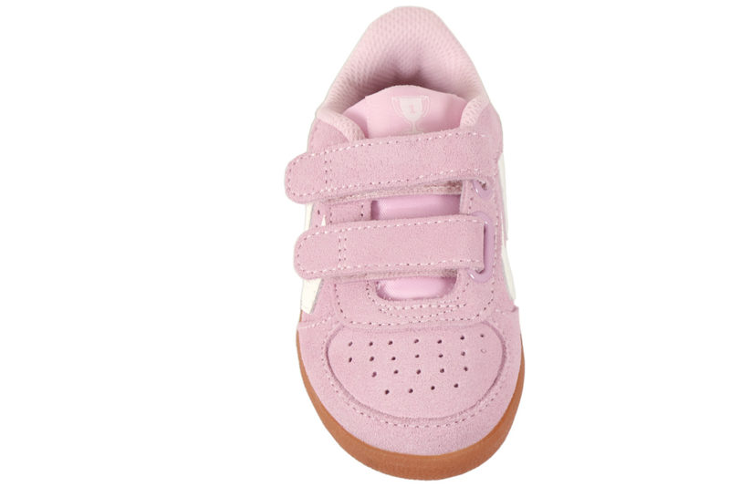 Super sød sko fra Hummel til pige. Skoen er lavet af lyserødt ruskind, med hvide detaljer på siden og hælkappen. Op langs vristen er der lyserøde velcroremme, så skoen er let at komme af og i. Indvendigt er skoen foret med lyserødt tekstil. Indlægssålen er af lyserødt tekstil. Slidsålen er lavet af naturfarvet gummi. Super sød sko til pige.