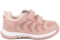 Smart sko til piger. Skoen er lavet af lyserødt tekstil med glimmer. På inder- og ydreside har skoen den velkendte Puma stribe i farven sølv og på pløsen er der et Puma mærke. På vristen har skoen to lyserøde velcrobånde, som gør at skoen er nem at tilpasse foden. Indvendigt er den foret med lyserødt tekstil og har en SoftFoam+ indlægssål, som er blød at træde på. Slidsålen er en slidstærk hvid gummisål. Smart og sød kondisko til småbørn.