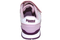 Super smart sko fra Puma til børn. Skoen er lavet af lyserødt tekstil med lilla detaljer i tekstil samt PU. Op langs vristen har skoen to velcroremme, som gør at skoen let kan justeres efter foden. På inder- og ydersiden af skoen er der den velkendte Puma stribe i hvid. Indvendigt er skoen foret med lyserødt tekstil, og har en lyserød tekstil dæksål. Mellemsålen er lavet af hvidt EVA og slidsålen af lilla gummi. Super smart sko til børn.