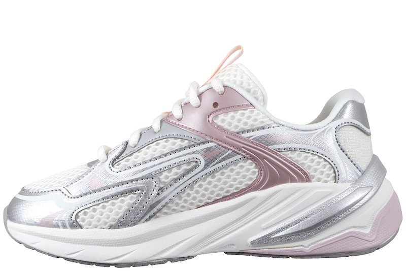 Super smart Skechers til pige. Skoen er lavet i hvidt tekstil, med sølv og lyserøde detaljer i PVC. Op langs vristen har skoen hvide snørebånd som gør skoen let at tilpasse til foden. Indvendig er skoen foret med hvidt tekstil, og har en lyserød dæksål. Mellemsålen er lavet af hvid, lyserød og sølv EVA. Slidsålen er lavet af grå PVC. Super sød og fin sko til pige.