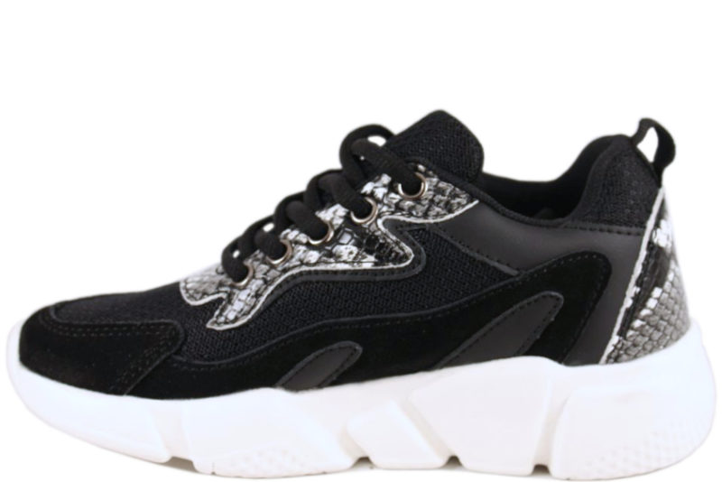 Chunky sneakers til piger i sort og hvid med et rigtig råt look og snakeprint. Skoen er med sorte snørebånd, så de er nemme at tilpasse foden. Slidsålen er hvid og lavet i skum, hvilket gør skoen let. Super smart chunky sneakers fra Sofie Schnoor.