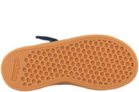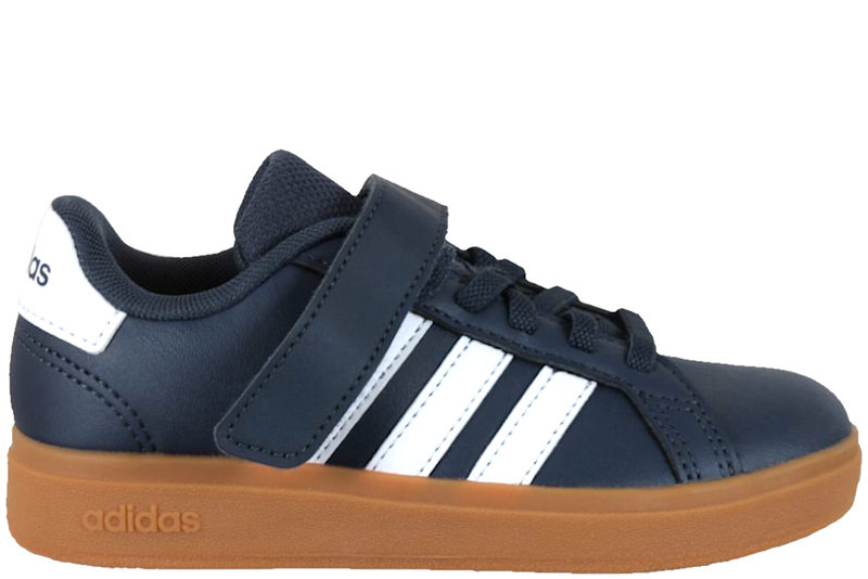 Super fin sko fra Adidas til børn. Skoen er lavet af mørkeblåt PU materiale. Langs vristen har skoen mørkeblå elastik snørebånd, så skoen sidder godt ind til foden. Ved insteppet er der velcrobånd, som gør skoen let at komme i og af. På inder- og ydersiden af skoen er der de velkendte Adidas striber i hvid. Indvendigt er skoen foret med mørkeblåt tekstil, og har en mørkeblå indlægssål ligeledes i tekstil. Slidsålen er lavet af brunt gummi, så man let kan stå fast. Super smart sko til børn.