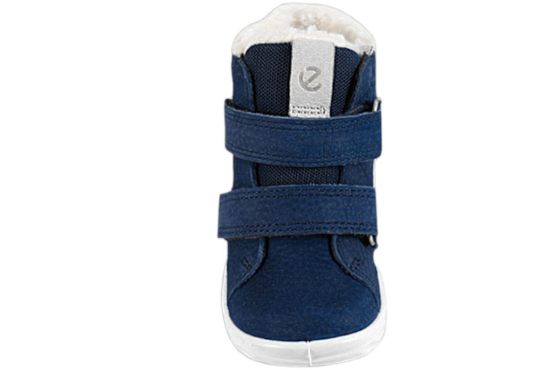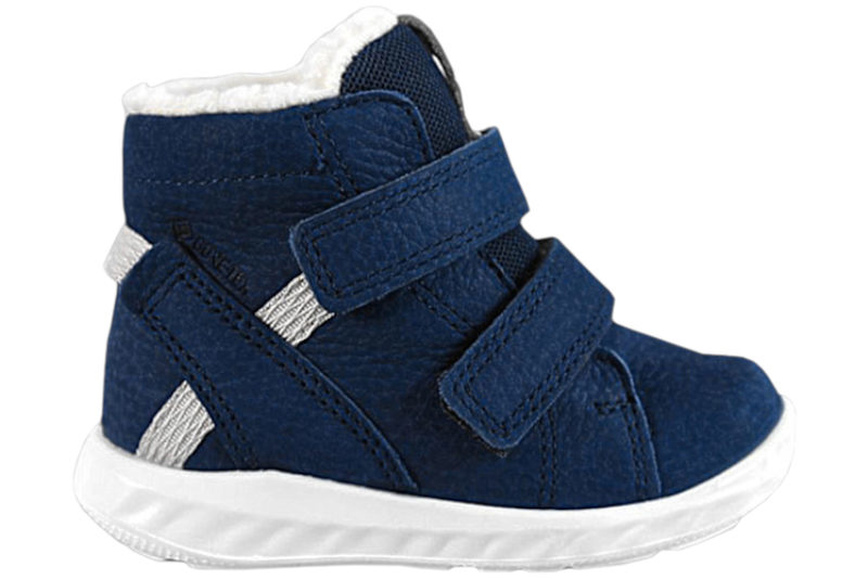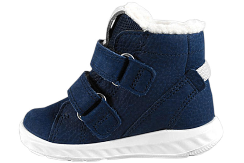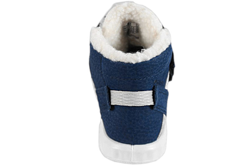 Super sød vinterstøvle til børn. Støvlen er lavet i navyblå olieret nubuck. Over vristen er der to velcroremme, som gør den let at komme i og af samt regulere støvlen efter barnets fod. Indvendigt er støvlen foret med hvidt uld, så den er dejlig varm til de kolde måneder. Støvlen har en sort indlægssål i uld. Slidsålen er lavet af hvidt PVS. Støvlen er med Gore-Tex, der gør den vandtæt. Super god og fin støvle til børn.