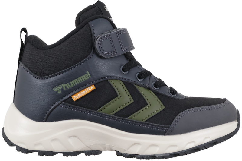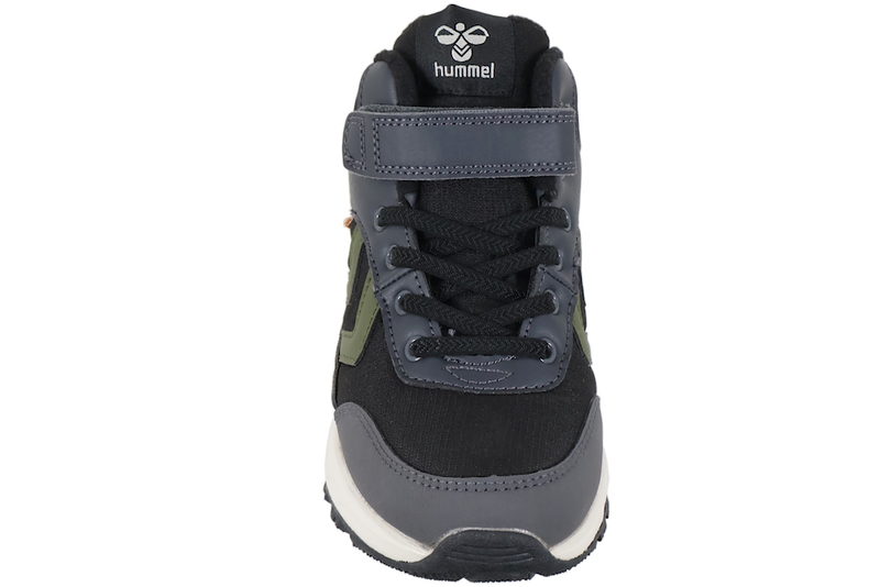 Super smart vinterstøvle fra Hummel til drenge. Støvlen er lavet af sort og mørkeblå tekstil. På siden af støvlen har den de velkendte hummel-striber i grøn, samt logo i grøn. Støvlen er med sorte elastiksnøre og velcrobånd, som gør det nemt at komme i og af støvlen. Indvendigt er støvlen foret med tekstil, samt indlægssålen. Ved insteppet er støvlen foret med sort fleece. Mellemsålen er lavet i hvidt PU. Slidsålen er lavet i sort gummi, så man står godt fast.