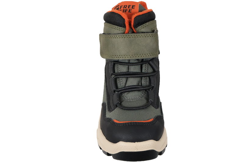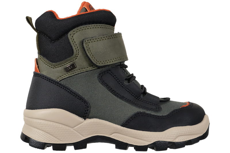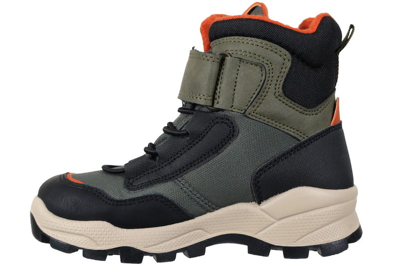 Smart vinterstøvle fra Imac til drenge. Støvlen er lavet af grønt og sort PU og tekstil. Foran er der elastiksnøre, samt en velcrorem, så den kan tilpasses efter foden. Indvendigt er den foret sort foer, så den holder fødderne lune. Mellemsålen er en beige EVA sål. Slidsålen er en sort PVC sål. Støvlen er med tex, så den holder fødderne tørre.