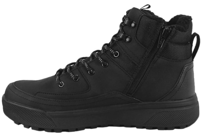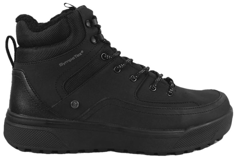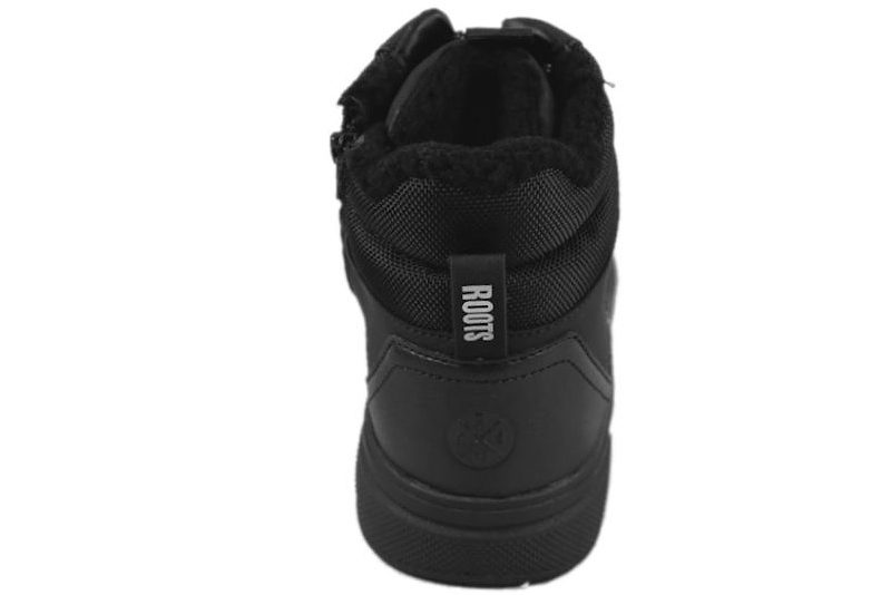 Sort vinterstøvle til herre og drenge. Støvlen er lavet i sort syntet, og støvlen er med sympatex, så den er 100% vandtæt. Støvlen er lavet af genbrugsmateriale og er meget åndbar, samt vindtæt. Støvlen er med sorte snørebånd med hvide prikker. På hælkappen er der en strop, hvorpå der står Roots. På indersiden er der en lynlås, så den er nem at komme i og af. Indvendigt er dem foret i sort foer. Super smart vinterstøvle til mænd og drenge.