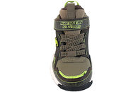 Støvlet fra Skechers i brun og neon grønne farver. Den er 100% vandtæt og den har elastiksnøre og et velcrobånd, så de er nemme selv at komme i. Den har en neon grøn strop bagpå. Slidsålen er en gummisål og barnet står godt fast da den har et godt vejgreb. Indvendigt er den foret. Super overgangsstøvle til drengene.