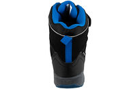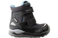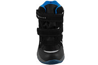 Super fin støvle til drenge. Støvlen er lavet af sort PU og tekstil. Foran er der to velcroremme, som gør den let at tilpasse efter foden. Indvendigt er den foret med blå tekstil og har let sort plysfor. Slidsålen er lavet af sort og grå gummi. Denne støvle er med C-TEXI, der gør støvlen vandtæt.