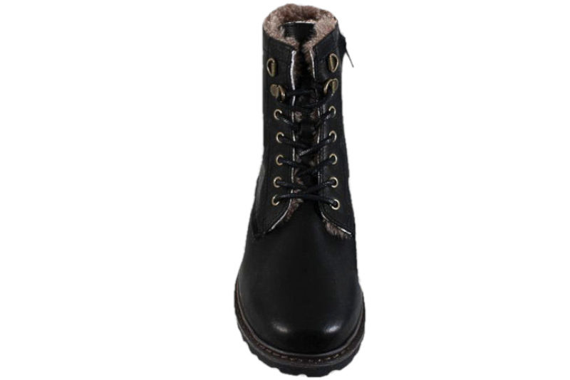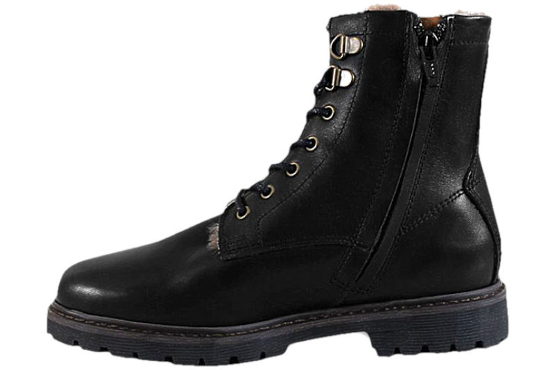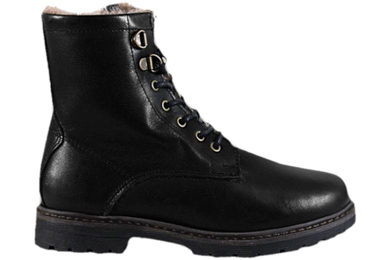Super smart støvle fra Bisgaard. Støvlen er i sort glat skind og har sorte snørebånd foran. Den har en lynlås på indersiden, så den er nem at komme i og af. Indvendigt er støvlen foret med brunt plys af lammeuld, så den kan holde fødderne lune. Slidsålen er en sort gummisål. Flot og enkel støvle til piger.