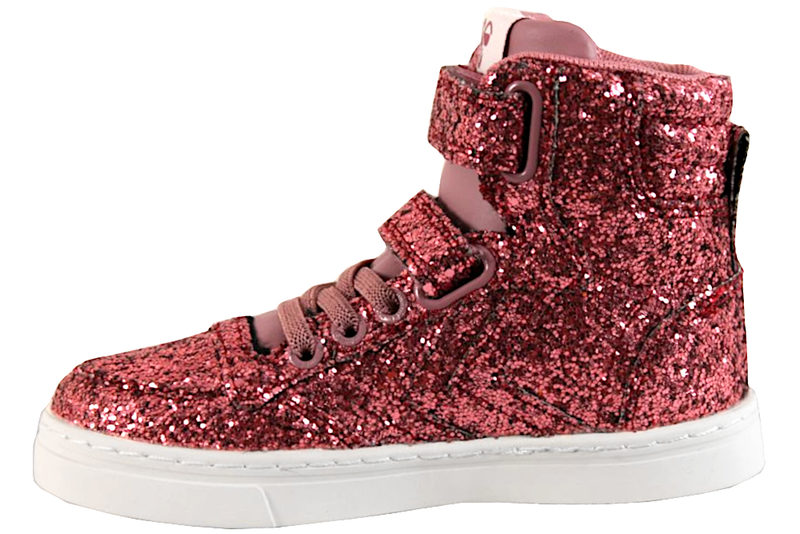 Super smart basketstøvle i pink glimmer fra Hummel til piger. Støvlen er lavet i tekstil med glimmer og har to velcroremme, samt elastiksnøre langs vristen, så den er nem at tilpasse til foden. Indvendigt er den foret med rosa tekstil. Støvlen har en hvid slidsål i gummi. Super smart støvle til piger.
