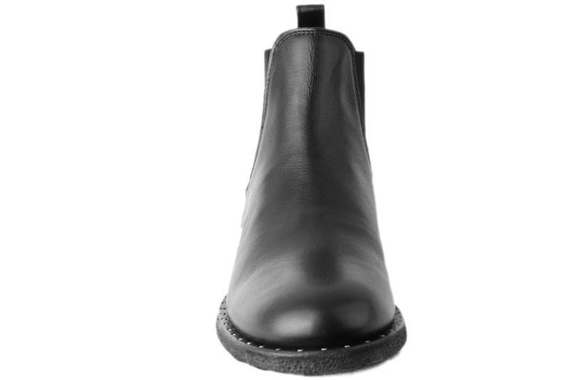 Støvle fra Angulus i sort skind. Støvlen har ribbede elastik i begge sider, så man nemt kan komme i og af den. Bagpå er der en sort strop i samme skind. Indvendig er den skindforet og har en blød skindsål, som giver en god komfort. Støvlen er i normal fit. Bagpå står der Angulus i sort. Støvlen har nitterrand, hvilket giver et super smart look. Slidsålen er en rågummisål. Super smart støvle fra Angulus, der kan bruges til pænt og hverdag.