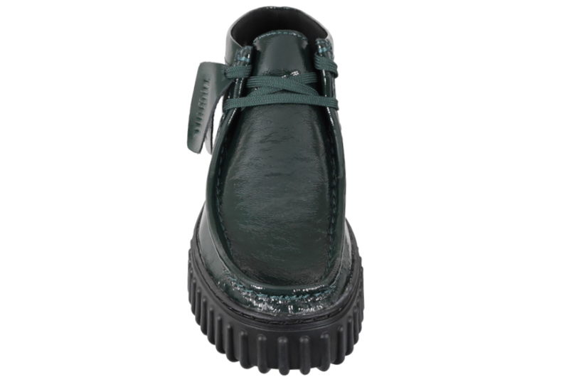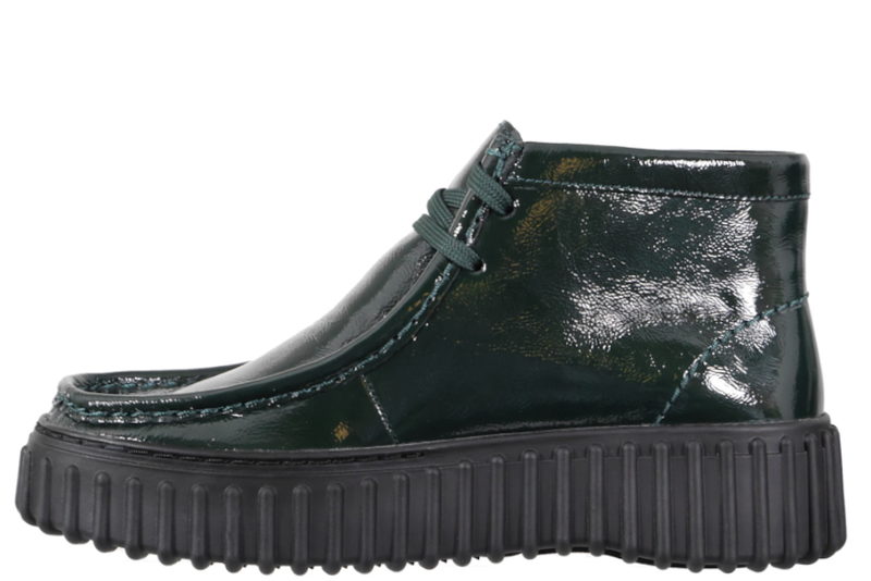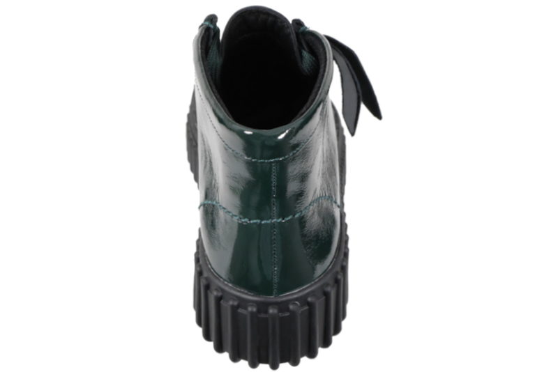 Rigtig flot støvle/sko fra Clarks til damer. Støvlen er lavet af mørkegrøn polido, som giver et smart look. Foran er der mokkasin syning. Støvlen er med grønne snørebånd, så den let kan tilpasses foden. Indvendigt er den foret med sort tekstil, og den har en skind indlægssål. Slidsålen er en sort gummisål, som giver et smart look.