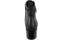 Super smart støvle fra Tommy Hilfiger til damer. Støvlen er lavet af sort glat skind, som giver et flot look. På skaftet er der en rem med en guld knap. På indersiden er der en lynlås, så den er let at komme i og af. Indvendigt er den foret med sort tekstil og har en blød skind dæksål. Slidsålen er en sort gummisål. Støvlen er med en lille hæl, som måler 5 cm.