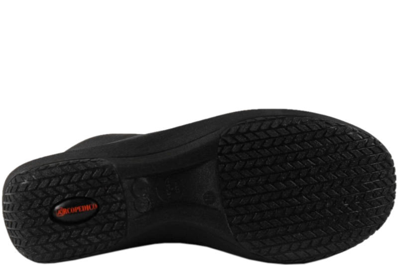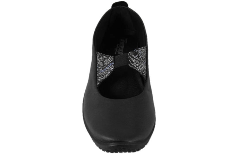 Sort ballerina i meget blødt og smidigt lycra med elastik over vristen. De er perfekte til problemfødder såsom knyster, hammertæer og ømme fødder. De tilpasser sig foden helt naturligt uden at stramme selvom fødderne hæver. Sålerne fra Arcopedico har dobbelt svangstøtte, hvilket aflaster fod, ryg, ben og læg. Skoene er med udtagelige dæksåler. Pæn sko der kan bruges til lidt af hvert.