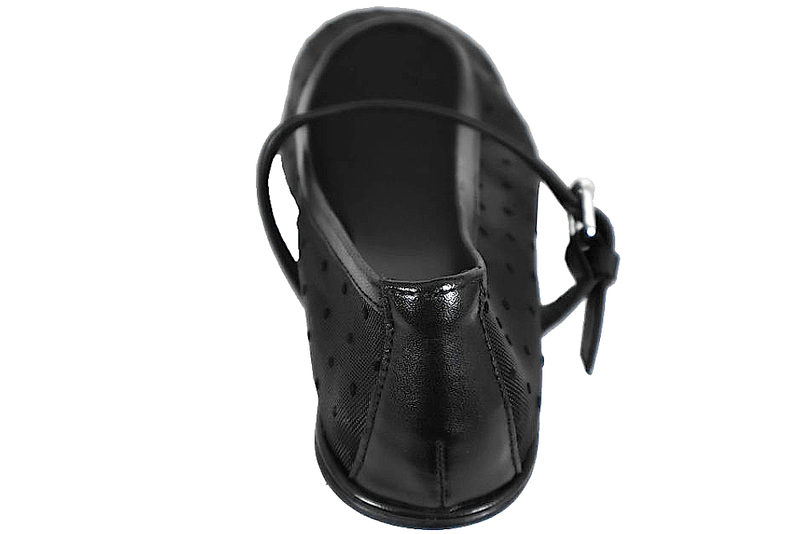 Super smart ballerina fra Copenhagen Shoes til damer. Den er lavet af sort mesh med små sorte prikker, som giver et smart look. Henover vristen er der en rem, der kan justeres med et spænde. Indvendigt er den foret med sort skind, og den har en skind dæksål. Slidsålen er en sort gummisål med en lille hæl.