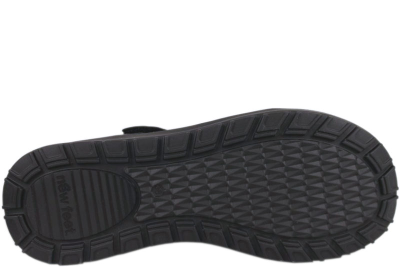 Sort sko i kalveskind, som gør skoene fleksible og behagelig at have på. Forbladet er Ortho Strecht og på siderne og ved hælkappen er der ruskind, hvilket giver en flot detalje. Skoen har et effektivt lukkesystem med én velcrorem over vristen, som nemt kan klippes til. Skoen har en aftagelig, stødabsorberende og blød 6 mm. indersål, ingen indvendige syninger og stabil hælkappe velegnet til gigtramte, diabetiker og følsomme fødder. Skoene har en smart sort sål. New Feet skoene er lavet i narturvenlige materialer.