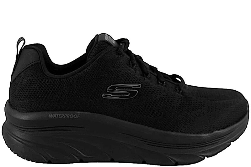 Smart og enkel sneakers fra Skechers til damer. Skoen har det velkendte logo S på ydersiden. Skoen er lavet i sort tekstil og har sorte snørebånd. Skoen har den gode Air-Cooled og Memory Foam indlægssål, så den er rigtig behagelig at have på. Skoen er vandtæt, så skoen kan bruges til lidt af hvert.