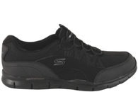 Sorte sneakers fra skechers. Max Cushioning Elite er en sko med maksimal støtte, som garanterer dig høj stabilitet og komfort i din aktive hverdag. På ydersiden af skoen er der det velkendte "S". Skoene er med sorte snørebånd og med Air-Cooled Goga Mat får du en let og affjedrende indersål, der sikrer dig høj støddæmpning og god komfort dagen igennem. Mellemsålen er lavet af sort EVA skum, der gør den behagelig at træde på. Slidsålen er lavet af sort EVA. Super god sko fra Skechers.