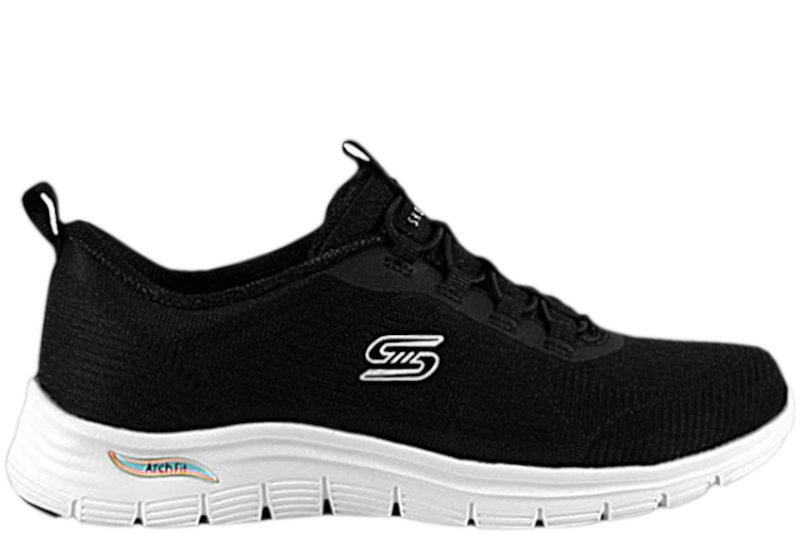 Smart sneakers fra Skechers til damer. Skoen er lavet af sort tekstil. Foran er der sorte elastik snørebånd, så den slutter sig godt ind til foden. På ydersiden er der et "S" for Skechers. Indvendigt er den foret med sort tekstil og har en blød Air-Cooled ArchFit indlægssål. Mellemsålen er en grå ArchFit sål, som giver god støtte. Slidsålen er lavet af grå EVA, med en sort forsegling i gummi.