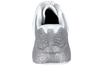 Super fin Skechers sneakers til damer. Skoen er lavet i hvidt tekstil med sølvfarvet glimmer. På ydersiden af skoen er der det velkendte "S" i hvid og sølv med glimmer. Langs vristen har skoen hvide snørebånd med glimmer, som gør den let at tilpasse efter foden. Indvendigt er skoen foret med hvidt tekstil, og har en gråfarvet "Air Cooled Goga Mat" dæksål med "copper infused lining". Mellemsålen er af hvidt EVA. Slidsålen er af hvidt EVA med hvidt gummi. Skoen har en super god stødabsobering. Super god sko til alle anledninger.