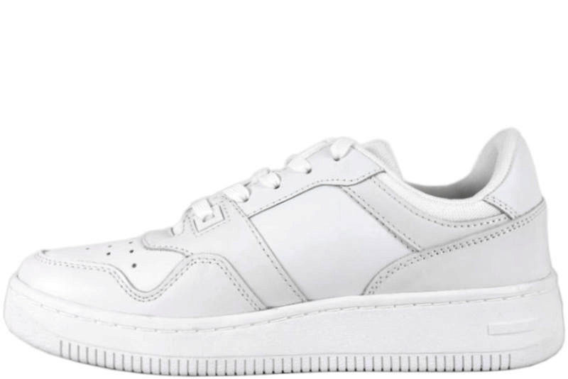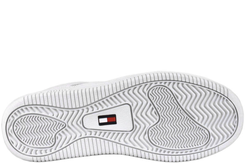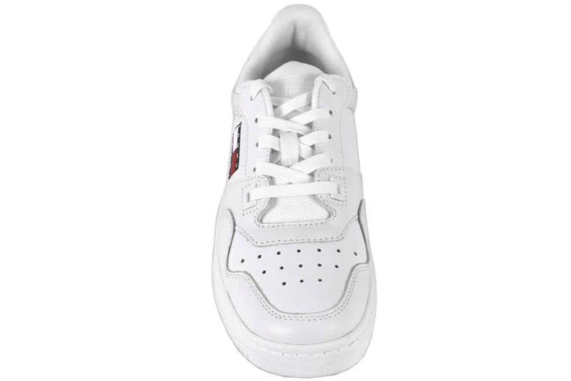 Flot sneakers fra Tommy Hilfiger i hvidt skind. Modellen er foret med tekstil indvendigt og en hvid gummisål. På siden er Tommy Hilfigers logo i deres originale farver blå, rød og hvid. Udtrykket er klassisk men i en fed retro bakset stil.