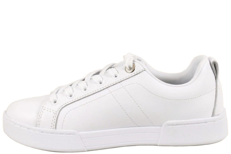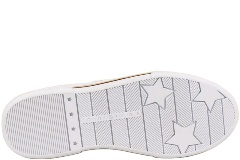 Flot hvid sko til damer. Skoen har hvide snørebånd, så den er nem at tilpasse foden. På ydersiden af skoen står der "TOMMY" i guld. På slidsålen er der detaljer i form af stjerner og Tommy Hilfigers logo. Super smart sneakers til damer.