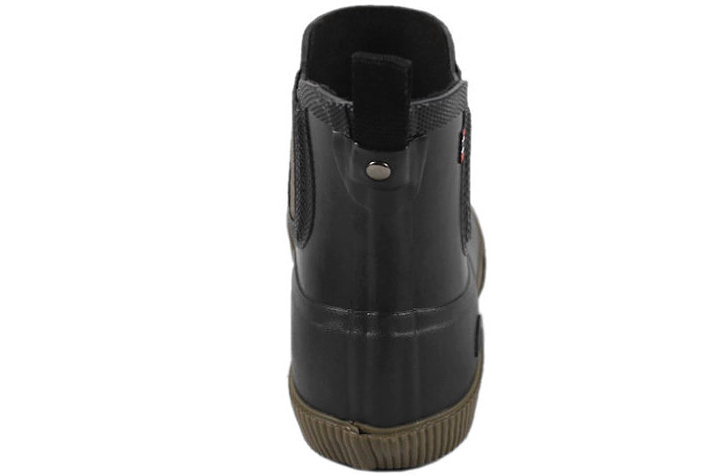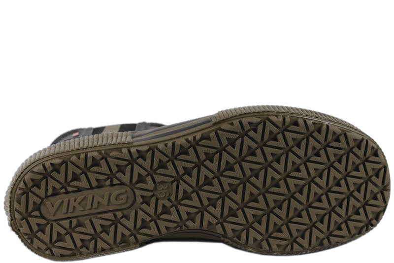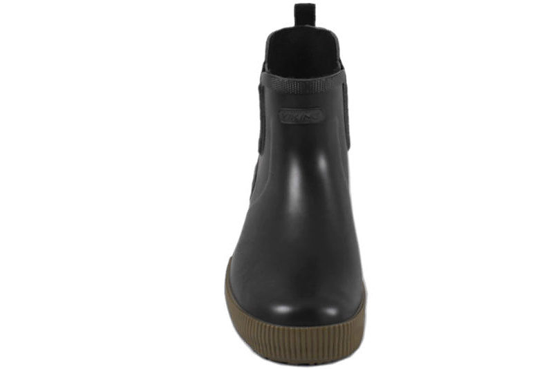 Sort kort gummistøvle armygrønne detaljer fra Viking, og med elastik i siderne. Bagtil har den en lille strop. Indvendig er den let foret og der ligger der en dæksål som er udtagelig. Foran står Viking logoet. Gummistøvlen har en armygrøn krans og slidsål, hvilket giver støvlen et smart og let look. God kvalitets gummistøvle fra Viking i ægte natur gummi.