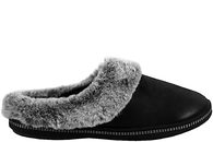 Sort hjemmesko til damer i sort plys med hvid kant i plys. Den er med lukket hælkappe, men den er nem lige at stikke foden i. Slidsålen er en sort gummisål, så de tåler man lige smutter ud i dem. Dejlig hjemmesko fra LBDK til damer.