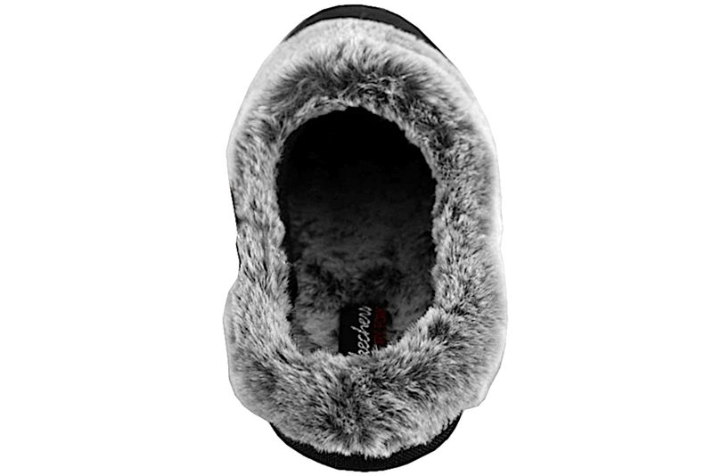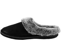 Super dejlig og blød hjemmesko til damer. Hjemmeskoen er lavet i sort tekstil. Indvendigt er den foret med grå plys, så den kan holde fødderne varme. Skoen har en blød memory foam dæksål. Slidsålen er af sort gummi, så man står fast. God og lun hjemmesko til de kolde dage.