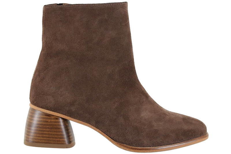 Super flot støvle fra Angulus. Støvlen er lavet i farven "taupe" ruskind, som giver skoen et enkelt og elegant look. På indersiden af støvlen er der et lille stykke sort elastik, som gør det let at komme i og af støvlen. Støvlen har også en lynlås. Indvendigt er den foret med lyst skind og har en dæksål ligeledes i skind. Slidsålen er lavet af naturfarvet gummi. Støvlen har en skulpturel træhæl, som måler 4,5 cm. Super flot og elegant støvle, som kan bruges til både hverdag og fest.