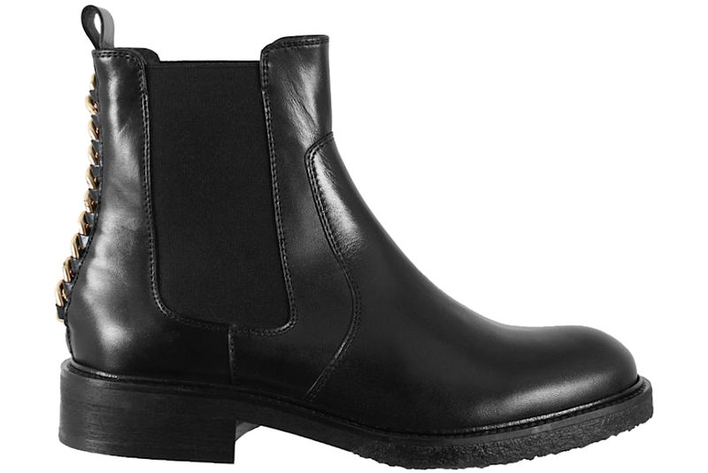 Støvle fra Billi Bi i sort glat skind. Støvlen har elastik i begge sider, så den sidder godt fast på foden. Bagpå støvlen er der en guldkæde, der er flettet sammen med læder, som giver støvlen et rigtig smart look. Indvendigt er den foret med skind og har skinddæksål, som giver den en god komfort. Slidsålen er en påsat rågummisål på forfoden samt er den randsyet. Super smart støvle, der kan bruges til mange anledninger.