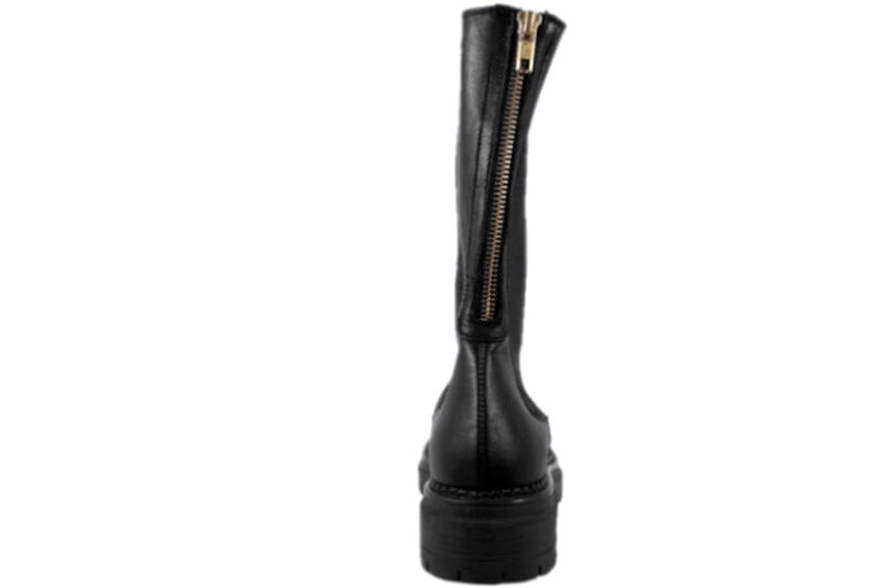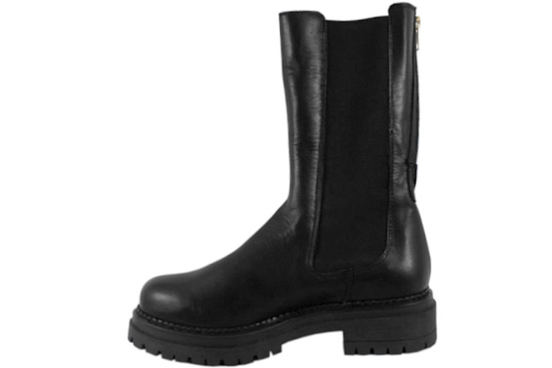 Sort støvle fra Cashott i sort glat skind. Den er på en grov gummisål og med elastik i begge sider, så de er nemme at træde i og af, når man lige lyner den op bagpå. Den har også en guldfarvet lynlås bagpå. Indvendigt er den foret med skind. Super sej støvle fra Cashott med en god pasform og med et fedt look.