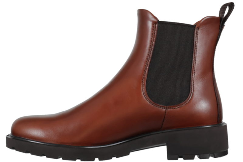 Super smart chelsea ankelstøvle fra Ecco til dame. Støvlen er lavet i "mink" farvet glat skind, og har på både inder- og ydresiden elastik som gør den let at komme i. Indvendig er støvlen foret med brun tekstil, og har en sort tekstil sål. Mellemsålen er lavet af sort PVC. Slidsålen er lavet af PVC. Super smart støvle som kan bruges til det hele.