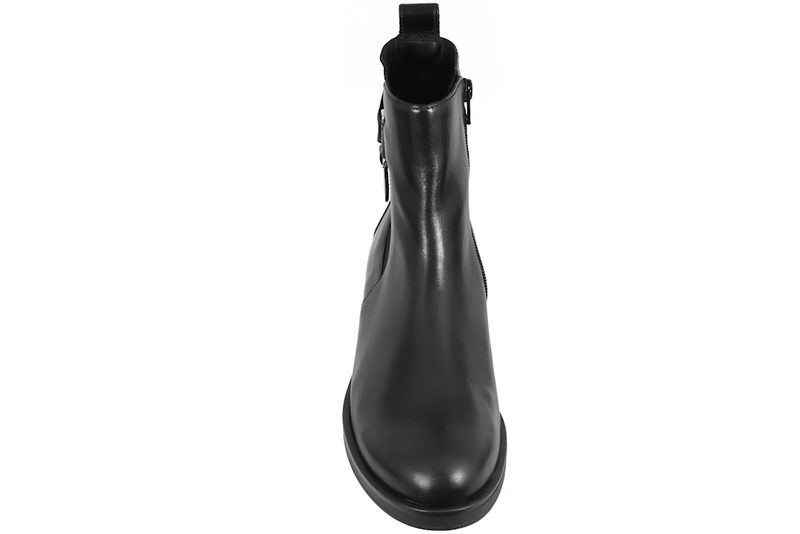 Super fin støvle fra Gabor til dame. Støvlen er lavet af sort glat skind, og har en fin detalje på ydersiden. På ydersiden er der elastik, og på indersiden er der en lynlås, som gør støvlen nem at komme i og få af. Indvendigt er støvlen foret med sort tekstil. Indlægssålen er lavet af sort skind. Sålen er lavet af sort gummi, og har en lille hæl på 3,5 cm. En super fin støvle til dame.