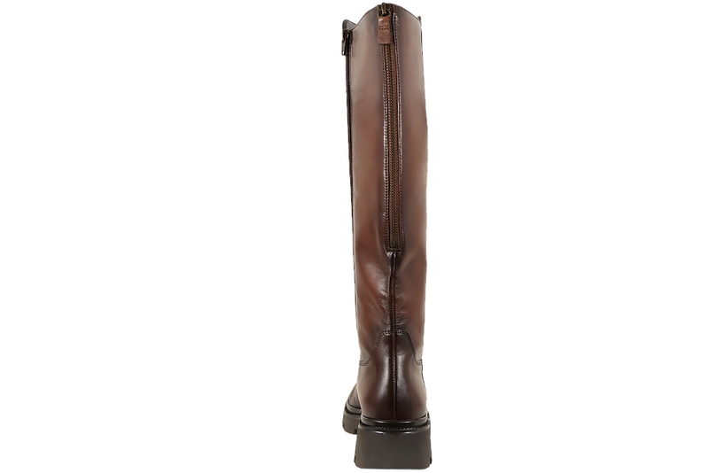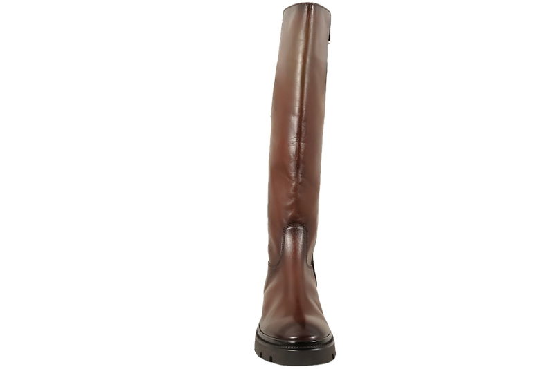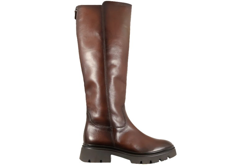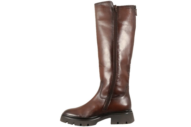 Lang støvle i brunt glat skind fra Gabor til damer. På indvendig side er der en lynlås, så den er nem at komme i og af. Bagpå støvlen, er der en lynlås, der giver ekstra vidde til læggen. Sålen er en sort PVC, hælen måler 3,5 cm. Under forfoden måler den 2 cm. Super enkelt og elegant støvle, der kan bruges til både hverdag og fest.