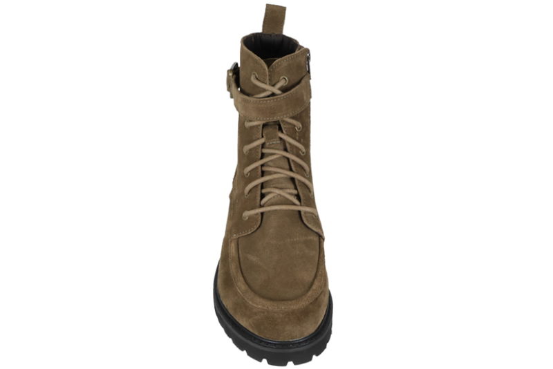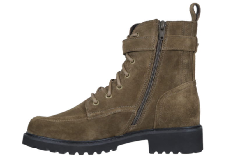 Super smart støvle fra Green Comfort til dame. Støvlen er lavet af grønt ruskind. Op langs støvlen er der grønne snørebånd, så den kan tilpasses efter foden. På indersiden af støvlen er der en lynlås, så den er nem at tage af og på. Støvlen er detaljeret med et sølv spænde, som giver et fedt look. Indvendigt er støvlen foret med sort tekstil. Indlægssålen er af sort tekstil. Denne model er med en 3,5cm hæl. Sålen er lavet af sort PVC. Super smart støvle til dame.