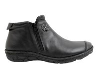 Kort lille støvlet fra Relaxshoe i sort skind. Støvlerne er dejlige lette, så de er nemme at få med sig. Der er lynlås på begge sider af støvlerne, så de er nemme at komme i og af. Samt er der en lille pynte blomst på højre side over vristen. Støvlerne er super komfortable.