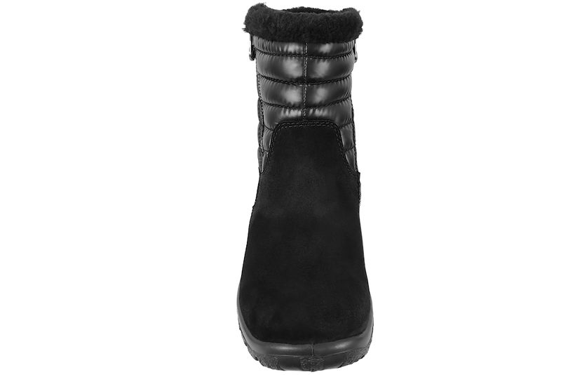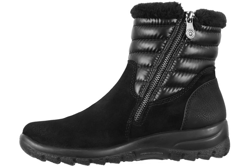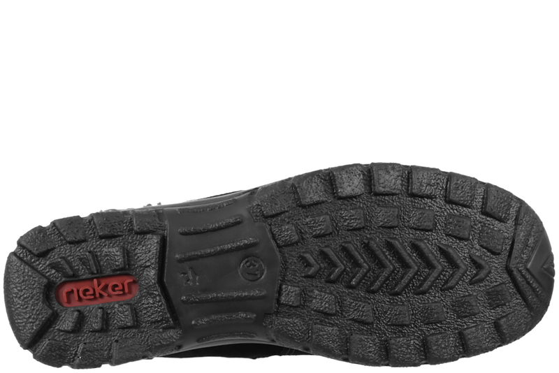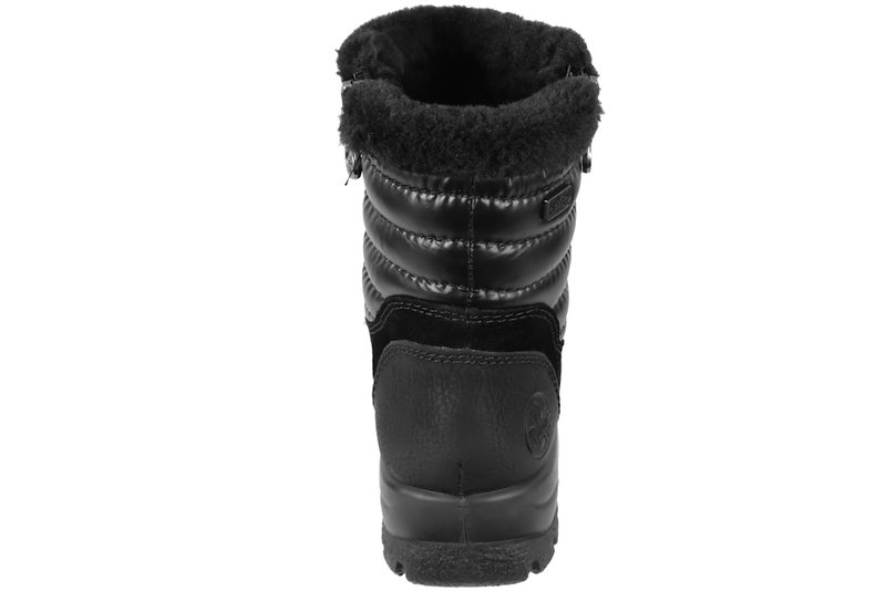 Rigtig god vinterstøvle til damer. Støvlen er lavet af sort ruskind og skaftet er lavet af PU. På begge sider af støvlen er der en lynlås, så den er let at komme i og få af. Indvendigt er den foret med sort foer. Slidsålen er en sort EVA sål. Støvlen er med Rieker-Tex, så fødderne holdes tørre.