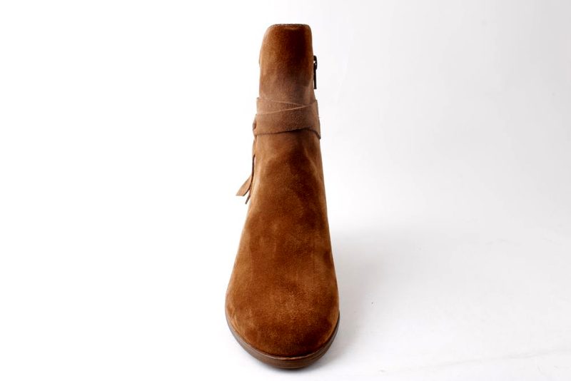 VAGABOND LOTTIE. Lysebrun damestøvle i ruskind fra Vagabond. Støvlen har en lynlås på indersiden. Den har et ruskindsbånd rundt om anklen, som giver den et utrolig smart look. Hælen måler 6,5 cm og har et lysebrunt trælook. Slidsålen er utrolig fleksibel og let. Støvlen har en godt pasform, så den sidder rigtig godt. Super fed støvle som kan styles til både et råt og feminint look.