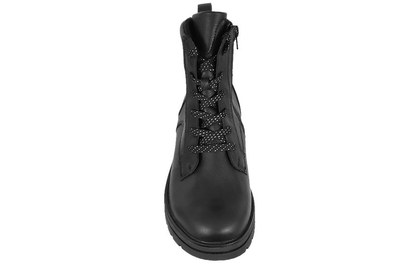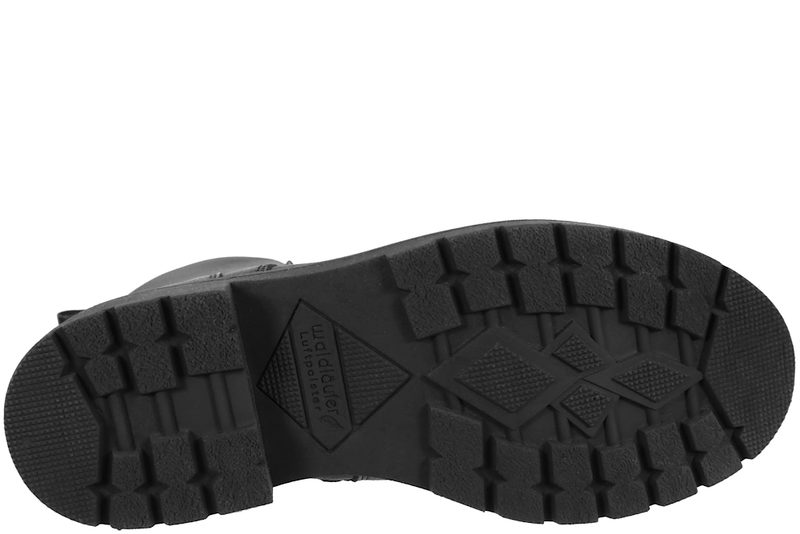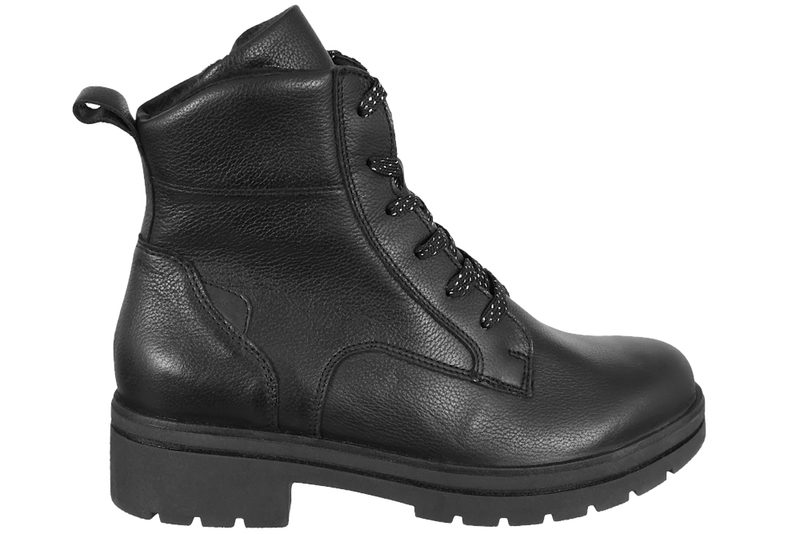 Super smart vinterstøvle fra Waldläufer til dame. Støvlen er lavet i sort glat skind, som giver et super klassisk look. Op langs vristen har støvlen sorte snørebånd med sølvnister, som giver et smart look. På indersiden har støvlen en lynlås, som gør støvlen let at komme i og af. Indvendigt er støvlen foret med sort foer, og den har en sort foret indlægssål. Slidsålen er lavet af sort PVC. Super smart og varm støvle, som kan bruges til meget.