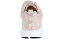 Smart sko fra Ecco til damer. Skoen er lavet af lyserødt tekstil, som gør den ekstra åndbar. Op langs vristen er der hvide snørebånd, så den let kan tilpasses efter foden. Indvendigt er den foret med lyst tekstil og har Eccos biom indlægssål i samme farve med krydsdetaljer på. Mellemsålen er lavet af hvidt EVA, som giver skoen en god stødabsorbering. Slidsålen er i sort gummi, så man står godt fast. Super god sko med god komfort.