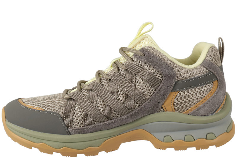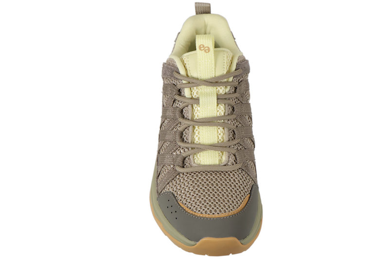 Super flot sko fra Green Comfort til damer. Skoen er lavet af en kombination af grønt, gul og grå tekstil og lidt detaljer i ruskind. Foran er der grå/gule snørebånd, så den let kan tilpasses efter foden. Indvendigt er den foret med gul tekstil, og den har en EnergySole indlægssål med svangstøtte. Mellemsålen er lavet af gråt/grøn EVA. Slidsålen er en gummisål med et godt mønster, så man står godt fast.