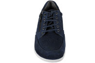 Super smart sko i mørkeblå ruskind og tekstil fra New Feet. Op langs vristen har skoen matchende snørebånd, så den er let at tilpasse efter foden. På ydersiden af skoen er der en lynlås, så den er let at komme i og af. Indvendigt er skoen foret med grå tekstil. Skoen har en lækker og blød gummisål, med en 6 mm. støddæmpende indlægssål. Skoen har en fast hælkappe, der holder foden i den rigtige position. Skoen er specielt lavet til vanskelige fødder såsom gigt og diabetes fødder. Skoen har en lysegrå slidsål af EVA. Super fin sko med komforten helt i top.