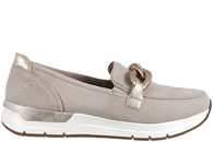 Let sko til damer. Overdelen er lavet i lys beige kanvas. Ved insteppet og ned langs vristen er der beige tekstil. Der er matchende elastik med letluk system i hvid, så den let kan tilpasses til foden. På ydersiden af skoen er der en pyntelynlås. Dæksålen er de lækre bløde memosoft såler, som former sig efter foden. Rundt ved sålen er der en rand i kork look, som giver en fin detalje. Slidsålerne er lavet i hvidt gummi. Let og lækker blød sko.
